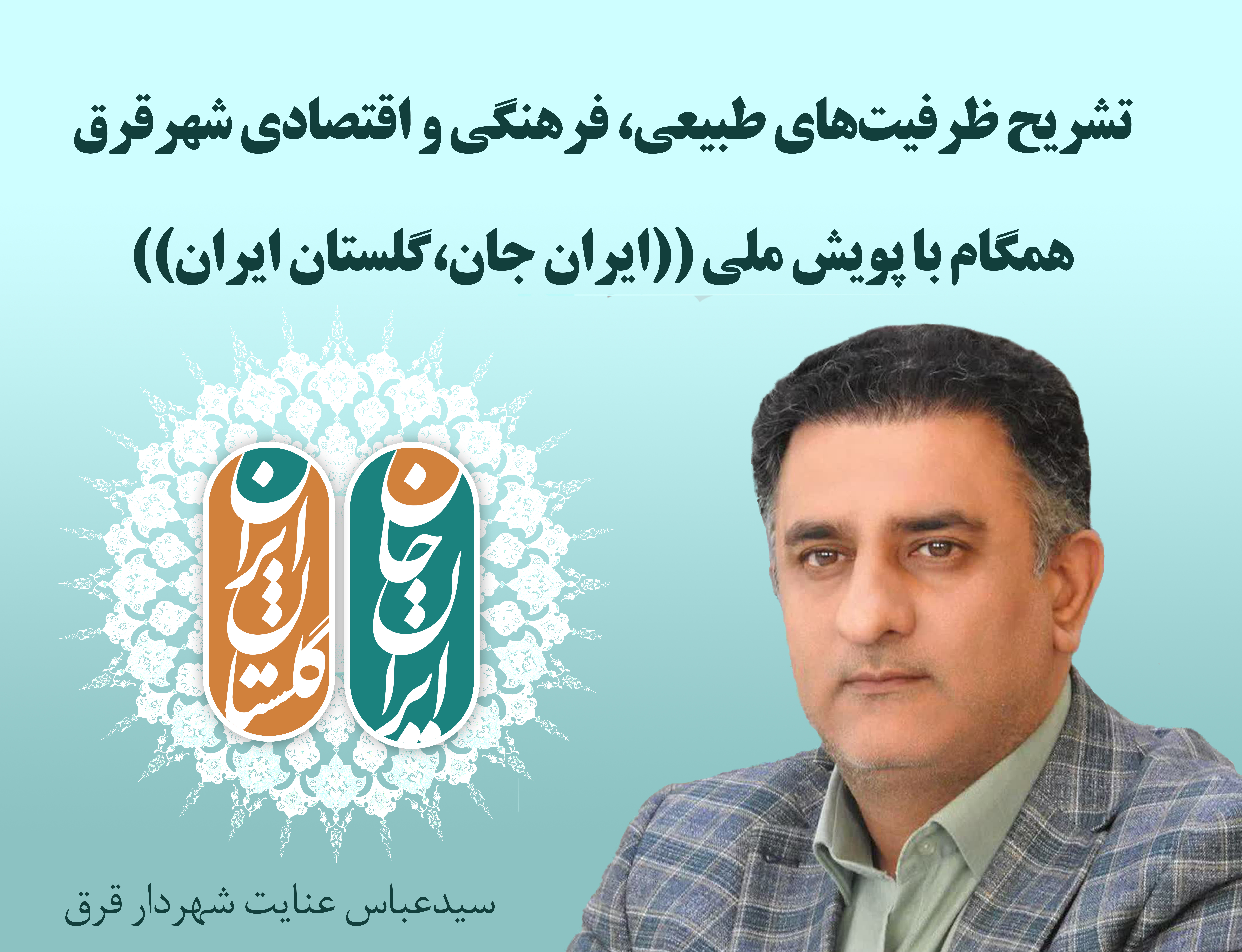 تشریح ظرفیتهای طبیعی، فرهنگی و اقتصادی قرق در قالب پویش ملی ((ایران جان،گلستان ایران)) به گزارش روابطعمومی شهرداری قرق، سیدعباس عنایت شهردار قرق همزمان با پویش ملی «ایران جان، گلستان ایران» به تشریح بخش مهمی از ظرفیتهای طبیعی، فرهنگی، اقتصادی و گردشگری شهر پرداخت.